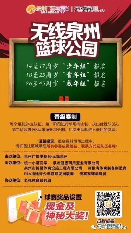 由泉州廣播電視臺-無線泉州主辦,舒華、福建刺桐灣體育、FBA福建青少年籃球聯(lián)盟等協(xié)辦的三人籃球賽即將開賽啦!